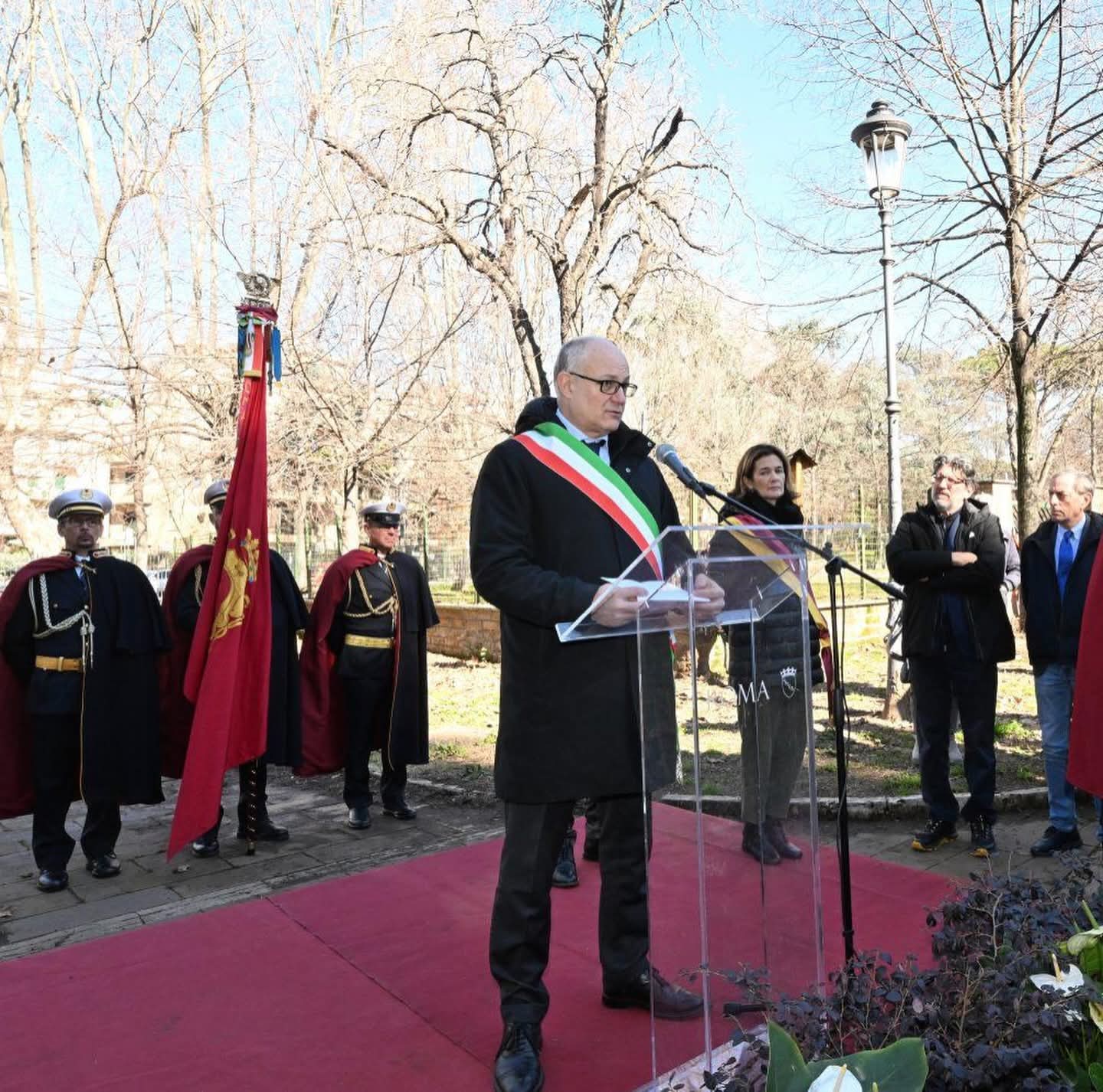 Il Sindaco Gualtieri durante la cerimonia per l'innaugurazione della via dedicata a Leda Colombini