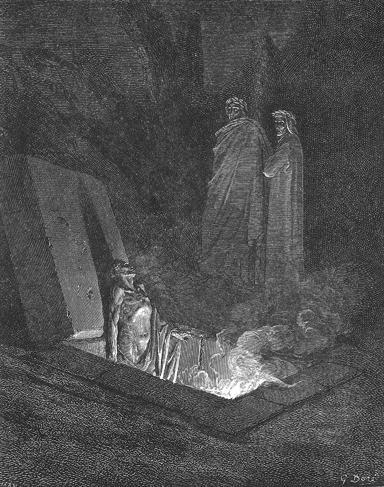 Farinata degli Uberti, Inferno canto X, incisione Gustavo Doré, 1861