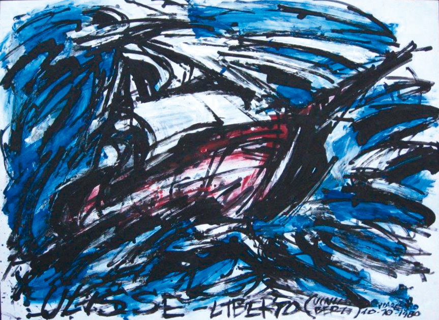 Vinicio Berti, Ulisse libero, 1980, olio su carta, 60x80