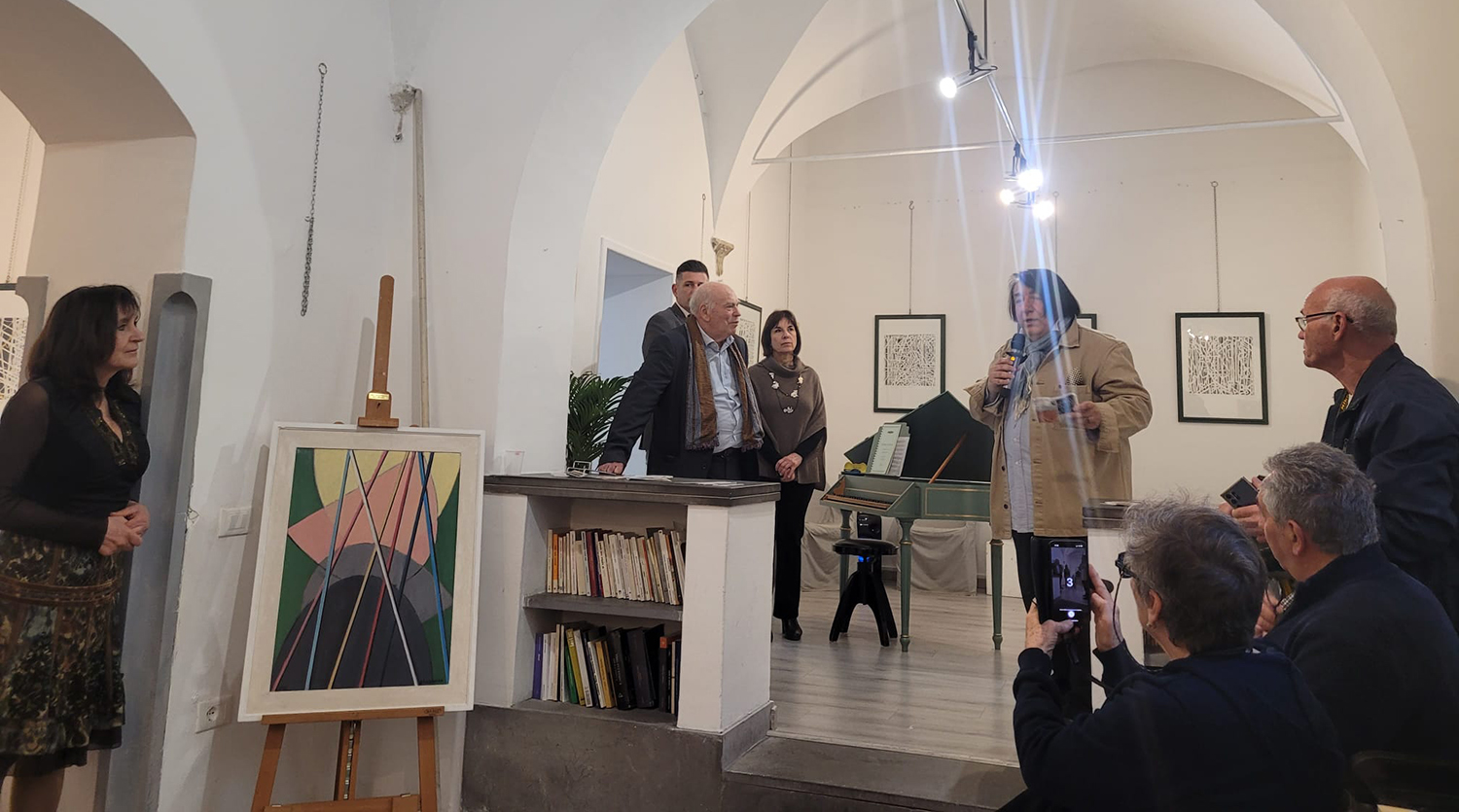 Da sinistra: la direttrice de La Pigna Annamaria Borsatti, l'artista Placido Scandurra, la presidente UCAI Stefania Cavallo e il curatore Claudio D'Alelio Marescotti.