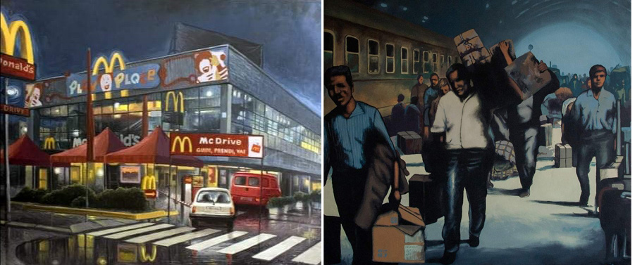 Egli stesso è alla ricerca di un suo linguaggio individuato in una forma di iperrealismo critico che denuncia l'inesorabile trascorrere delle stagioni e l'incapacità dell'uomo di far fronte ai tarli del tempo.