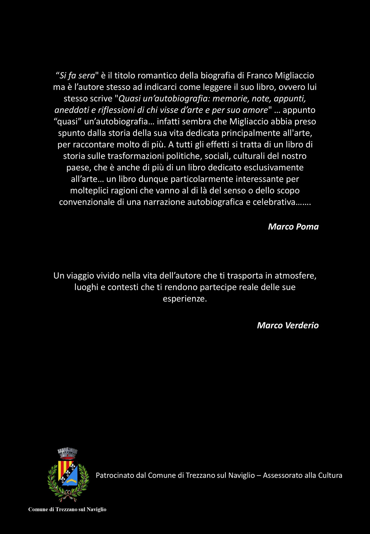 Un'autobiografia e non solo, un saggio ma molto di più, un libro di memorie e ciò che ruota attorno a persone e luoghi: molte sono le facce con cui si può leggere questo poderoso volume di Franco Migliaccio dal titolo SI FA SERA, edito nel 2021.